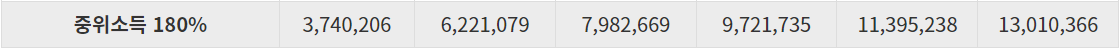 가구원에 따른 기준 중위소득이 180% 이하여야 합니다.