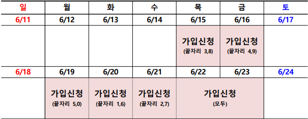 청년도약계좌의 첫 시행달인 6월에는 2023년 6월 15일~ 6월 23일까지 신청이 가능합니다.